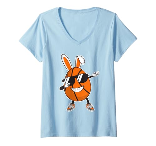 Womens Dabbing Easter Egg Basketball Funny Kids Easter Bunny Boys V-Neck T-Shirt
