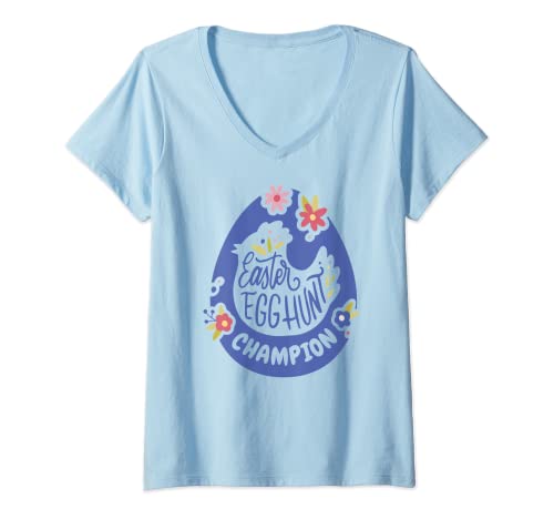 Womens Easter Egg Hunt Champion Egghunt - Cute Floral Colorful V-Neck T-Shirt