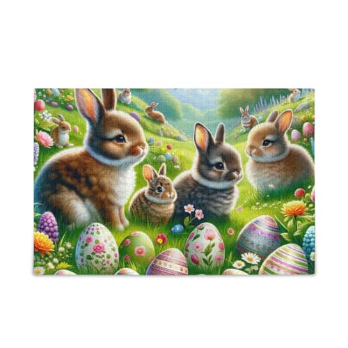 1000 Pieces Jigsaw Puzzle Easter Rabbits and Eggs Decoration Jigsaw Puzzles for Adults Teens