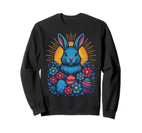 Vibrant Easter Bunny with Eggs and Flowers Sweatshirt