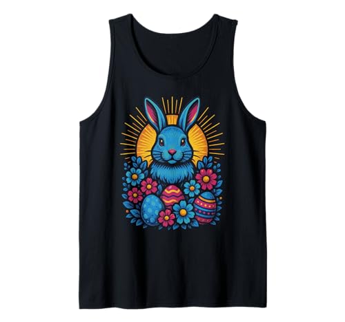Vibrant Easter Bunny with Eggs and Flowers Tank Top