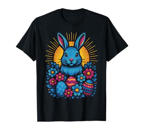 Vibrant Easter Bunny with Eggs and Flowers T-Shirt
