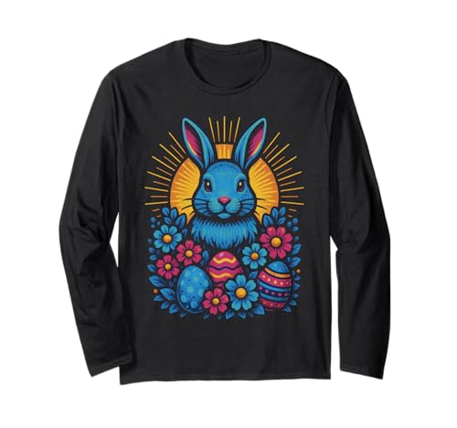Vibrant Easter Bunny with Eggs and Flowers Long Sleeve T-Shirt