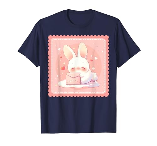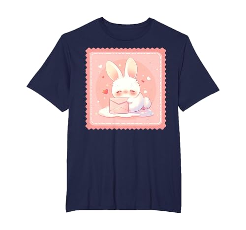 Kawaii Bunny Cute Stamp Easter Rabbit Anime Otaku T-Shirt, Men, Navy Blue, Large
