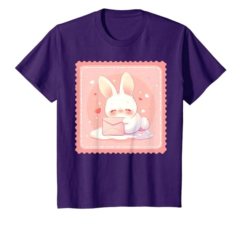 Kawaii Bunny Cute Stamp Easter Rabbit Anime Otaku T-Shirt, Youth, Purple, Large