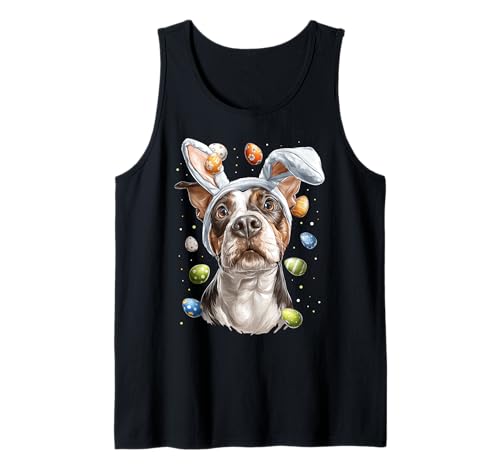 American Bull Terrier Dog Easter Rabbit Eggs Bunny Ears Tank Top