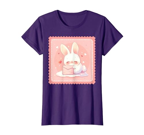 Kawaii Bunny Cute Stamp Easter Rabbit Anime Otaku T-Shirt, Women, Purple, Medium