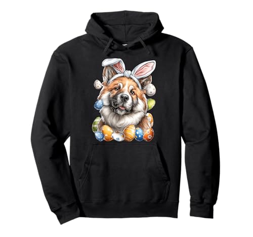 Akita Dog Easter Rabbit Eggs Bunny Ears Pullover Hoodie