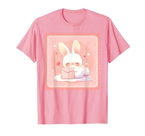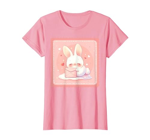 Kawaii Bunny Cute Stamp Easter Rabbit Anime Otaku T-Shirt, Women, Pink, Large