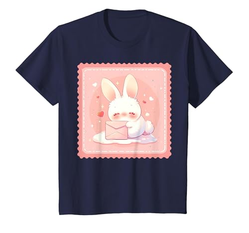 Kawaii Bunny Cute Stamp Easter Rabbit Anime Otaku T-Shirt, Youth, Navy Blue, Small