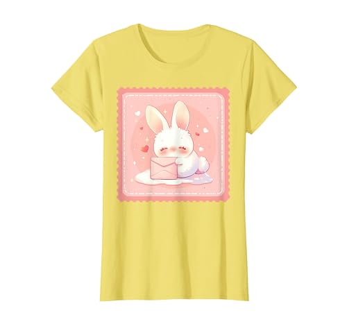 Kawaii Bunny Cute Stamp Easter Rabbit Anime Otaku T-Shirt, Women, Lemon Yellow, Large