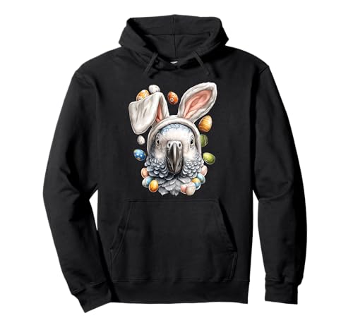 African Grey Parrot Easter Rabbit Eggs Bunny Ears Pullover Hoodie