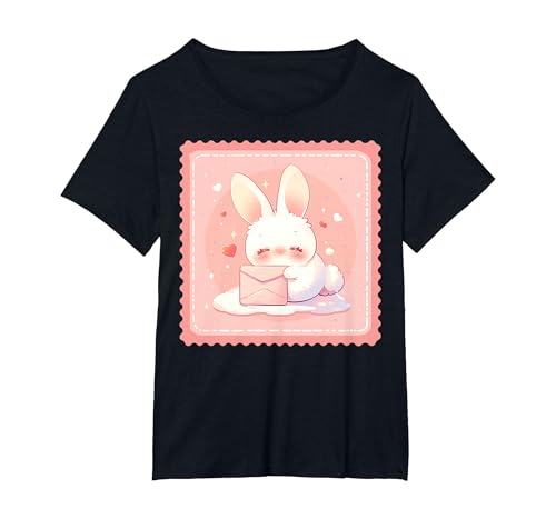Kawaii Bunny Cute Stamp Easter Rabbit Anime Otaku T-Shirt, Women's Plus, Black, 5X