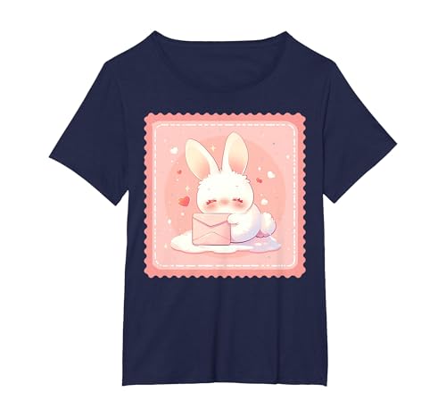 Kawaii Bunny Cute Stamp Easter Rabbit Anime Otaku T-Shirt, Women's Plus, Navy Blue, 2X