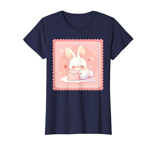 Kawaii Bunny Cute Stamp Easter Rabbit Anime Otaku T-Shirt, Women, Navy Blue, Medium
