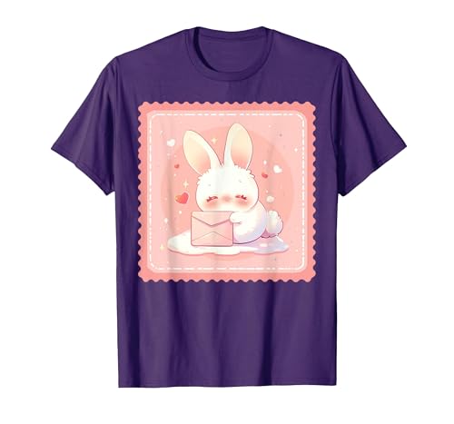 Kawaii Bunny Cute Stamp Easter Rabbit Anime Otaku T-Shirt, Men, Purple, Small