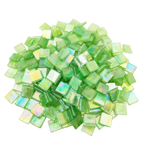 500g Ice Jade Mosaic Tiles, 1.5CM Square Glass Mosaic Pieces for Art Crafts,250PCS Easy Cut Painting Glass Tiles Puzzle Material Cut Handmade (Iridescent Grass Green)