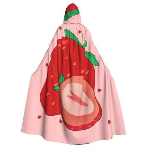 YYHHAOFA Cartoon Strawberry Printing Halloween Adult Hooded Cape Cloak For Role-Playing, Stage Costumes, Parties Easy Care