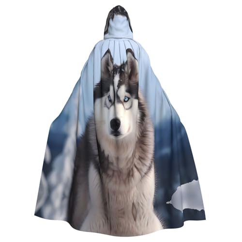 YYHHAOFA Husky Dog Printing Halloween Adult Hooded Cape Cloak For Role-Playing, Stage Costumes, Parties Easy Care