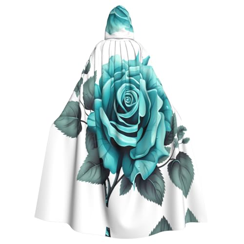 YYHHAOFA Turquoise Grey Rose Printing Halloween Adult Hooded Cape Cloak For Role-Playing, Stage Costumes, Parties Easy Care