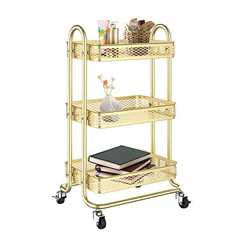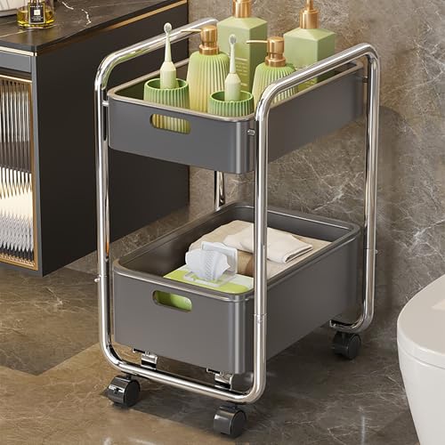 HDJKHFR 2-Tier Rolling Utility Cart,Stable Metal Storage Trolley with Lockable Wheels for Kitchen, Bedroom, Bathroom and Living Room,Easy Slide-Out Shelves (1 layer black)
