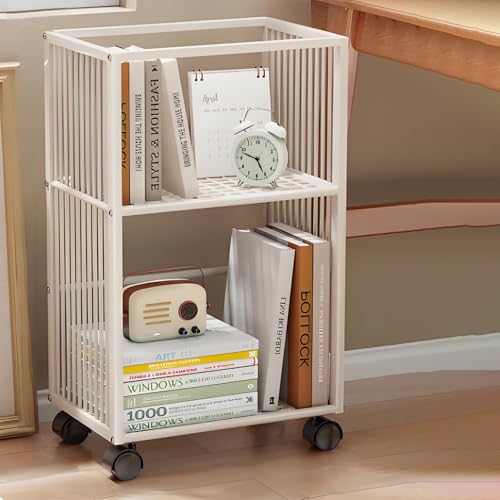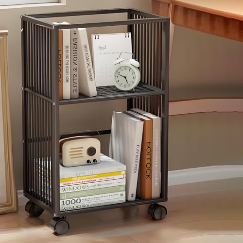 Mobile Bookshelf Storage Cart with Wheels, Slim Rolling Organizer for Narrow Spaces, Easy Slide Out Design for Efficient Space Utilization