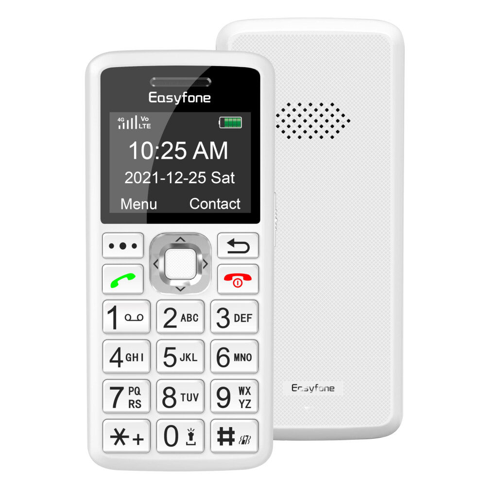 Easyfone T200 4G Sim-Free Feature Mobile Phone, Easy-to-Use Big Button Clear Sound Dumb Basic Phone for Seniors and Kids or Digital Detox (White)