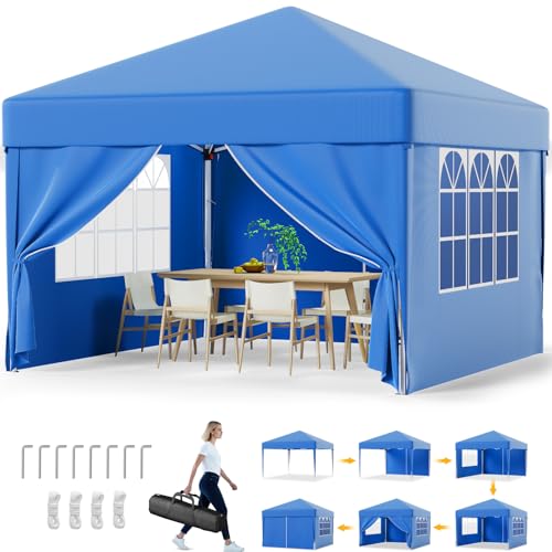 Devoko 3m x 3m Pop Up Garden Gazebo with Sides, Easy Setup Waterproof Marquee Tent with 4 Removable Panels, UV 50+ Canopy, Adjustable Height, Folding Outdoor Shelter for Camping, Events, Patio, Blue