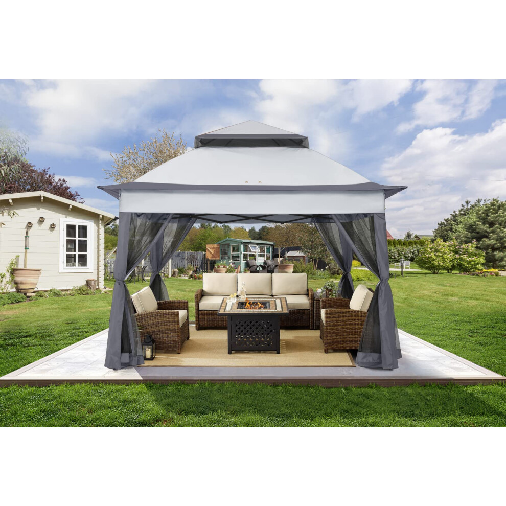 COOSHADE 11x11Ft Easy Pop Up Gazebo Tent Instant Outdoor Canopy Shelter with Mosquito Netting Walls(Dark Grey)