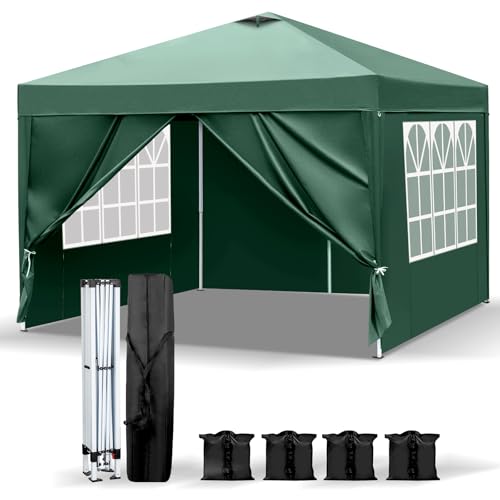 Bonnlo Pop Up Gazebo with Sides and Vent, Easy Setup Instant Canopy, Folding Garden Party Tent, Outdoor Event Shelter, Green 3m x 3m