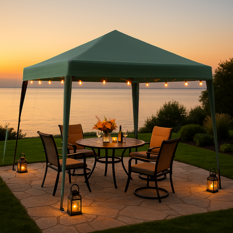 Home Source Pop Up Gazebo 3x3m Outdoor Garden Marquee Tent Waterproof Adjustable Height UV Protection Easy Up Green With Carry Bag