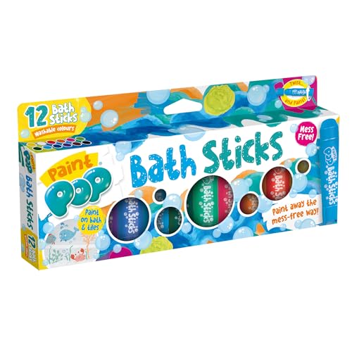 Paint Pop - Bath Sticks For Kids - 12 Washable Bath Paint Crayons - Mess-Free, Fast Drying Action, Easy Clean Up - For Creative Bathtime Fun Adventures - For Glass, Tiles or Ceramic - 3+ Years