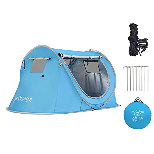 4 Person Easy Pop up Tent Automatic Setup 2 Doors-Instant Family for Camping Hiking &Traveling(Blue)