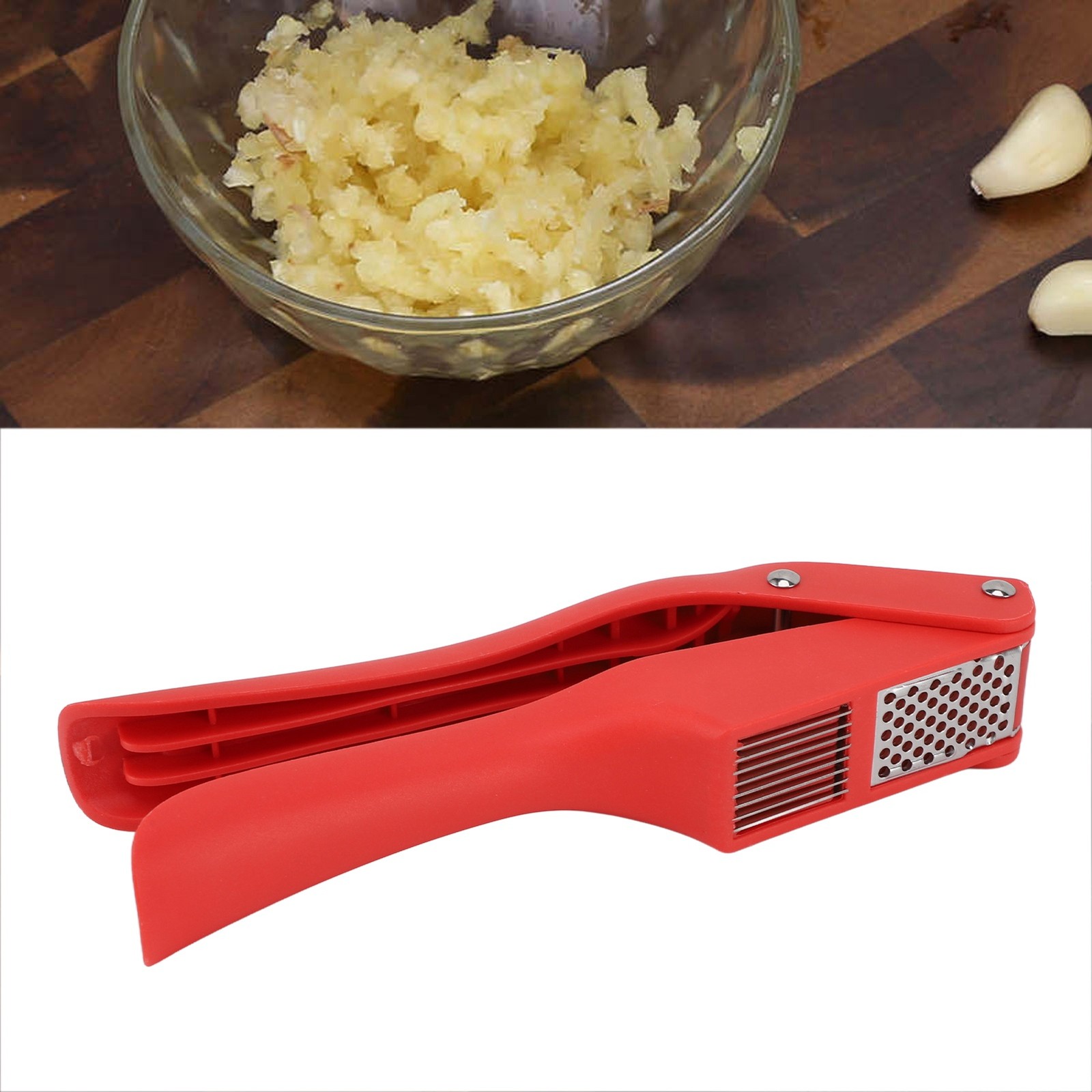 (Red)Ergonomic Handle Garlic Press Efficient Easy To Squeeze 2 In 1 Mincer Tool