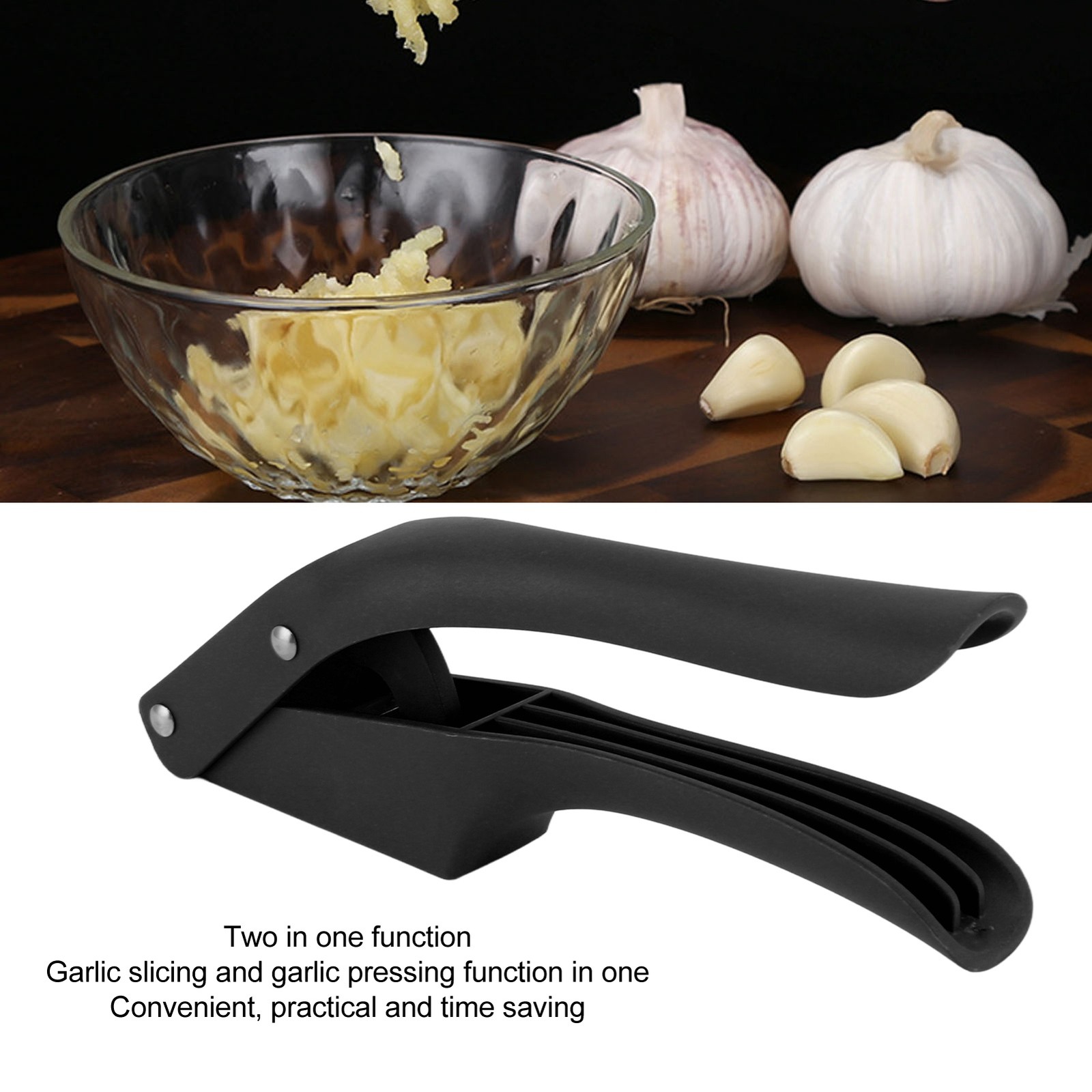 (Black)Garlic Press Multipurpose 2 In 1 Efficient Easy To Squeeze Ergonomic HG