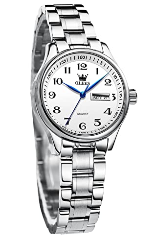 OLEVS Watches for Women UK Ladies Analog Quartz Silver and Gold Women's Watches Date Day Stainless Steel Waterproof Large Numbers Easy Read Dress Wrist Watches