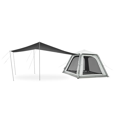 Inflatable Tent with Air Pump, 6-8 Person Family Cabin Tents with Stove Jack, 4 Season Luxury Inflatable Camping House Tent, Easy Setup, Large Blow Up Tents for Outdoor (Grey Pro)