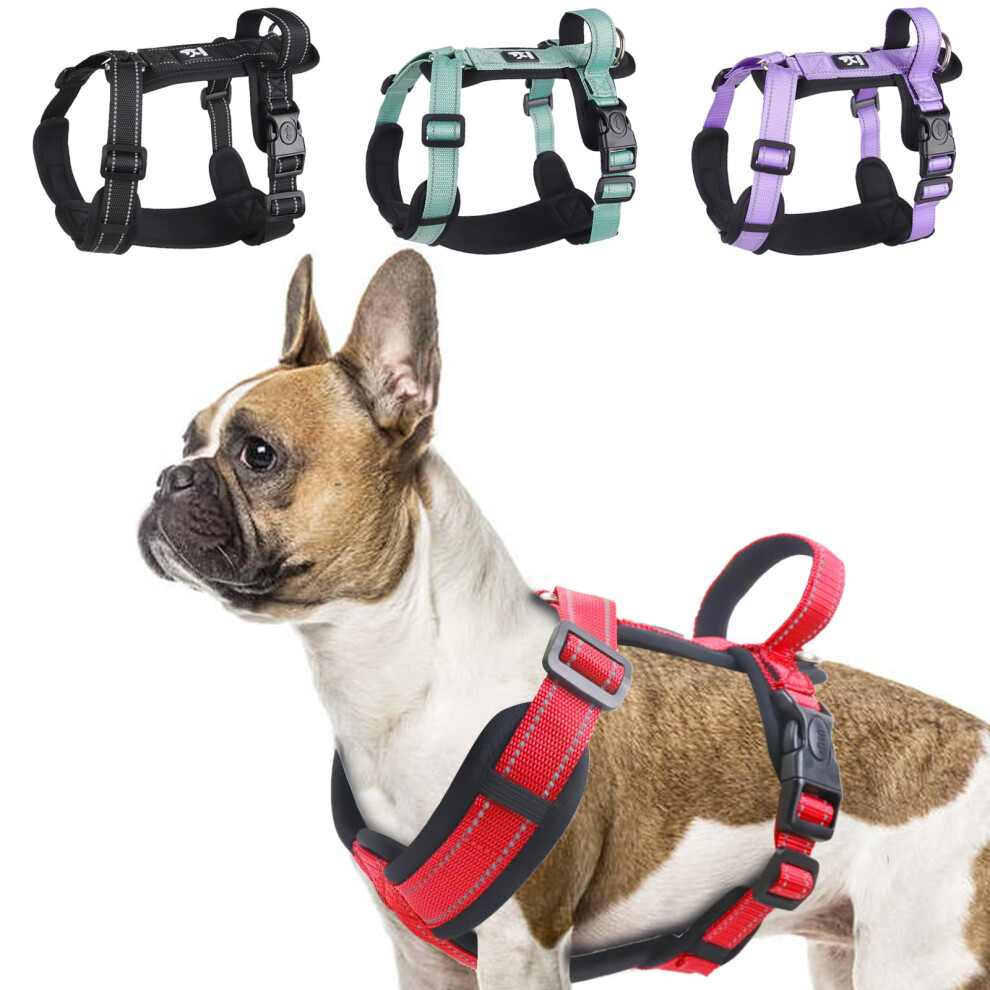 LiebeDD Dog Harness, H Shaped Front Clip Dog Harnesses with Handle, Reflective Adjustable French Bulldog Harness, Easy Walk Dog Harness for Medium