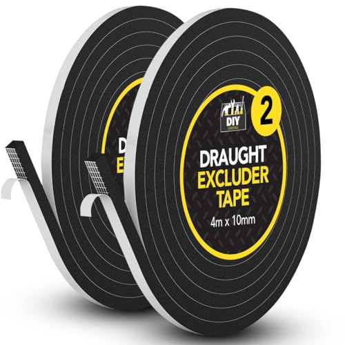 SOL 2pk Draught Excluder Tape 8m Total Length 10mm Wide 6mm Thick Self Adhesive Seal Draft Excluder for Doors and Windows Foam Strip Weatherproof Gap Filler Easy Install Home Door Frame Protection