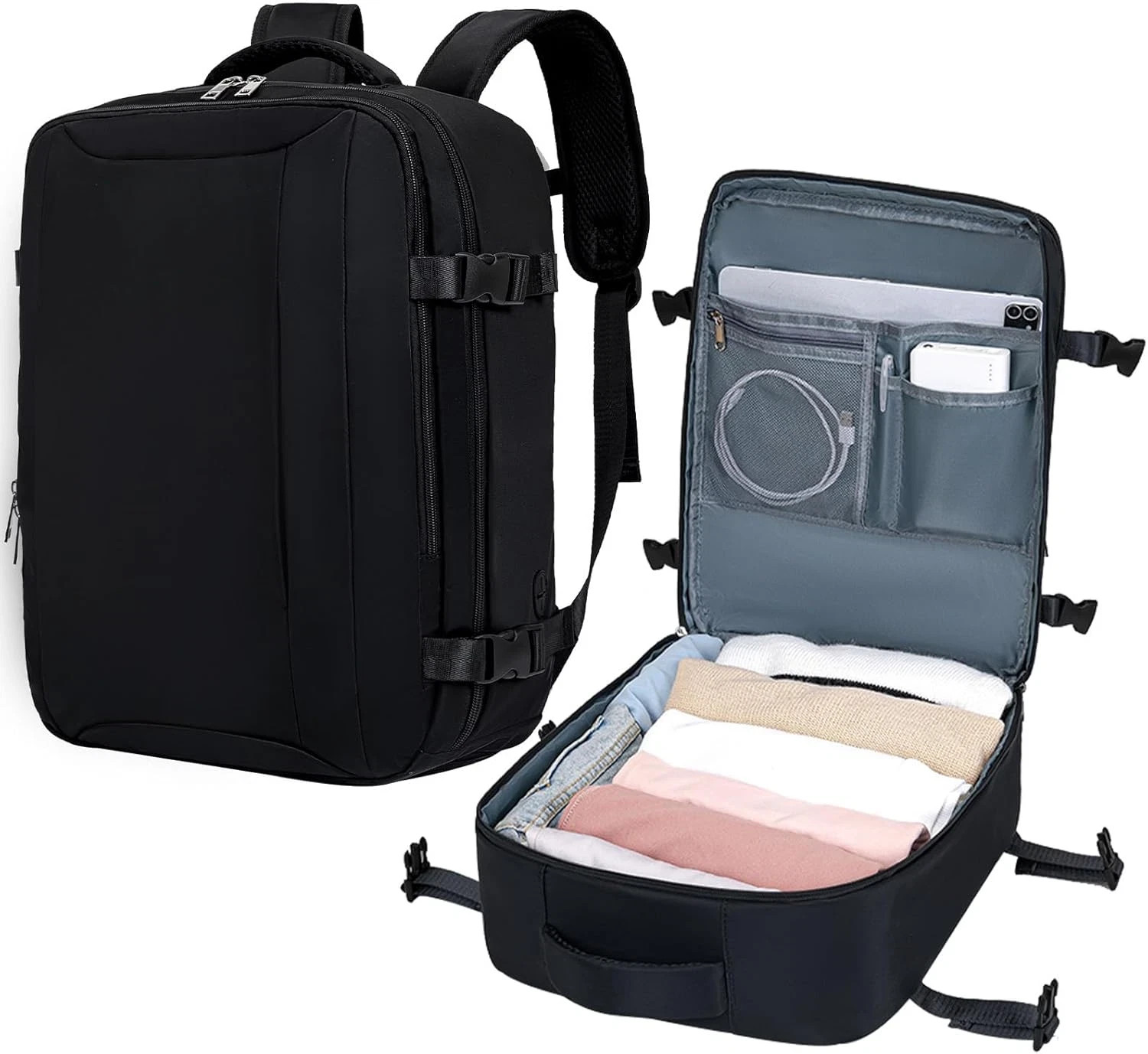 Easyjet Cabin Bags 45x36x20 Underseat 30L Travel Backpack Cabin Size Rucksack for Plane Hand Luggage Backpack Carry on Bag for Airplanes Flight Bag Fit 15.6Inch Laptop with USB Charging Port-Black