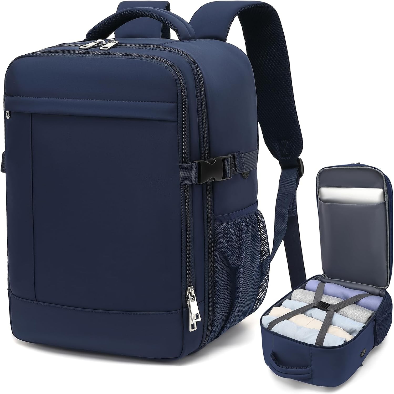 HOMIEE Easyjet Cabin Bags 22-40L Expandable Travel Backpack 45x30x17 Underseat Carry On Backpack Flight Approved Hand Luggage Suitcase 15.6 Inch Laptop Rucksack Fit Casual Daypack School Bag Blue