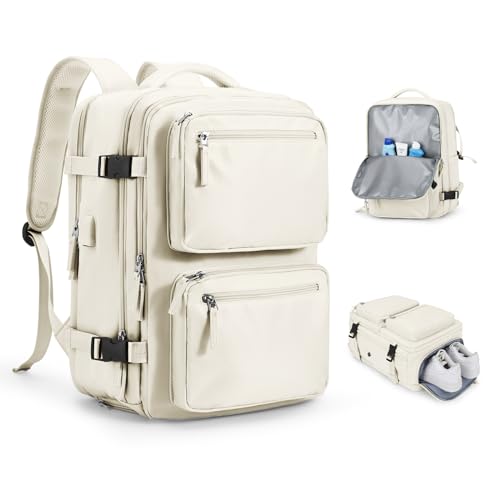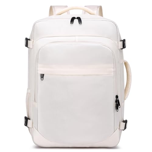 LOVEVOOK Travel Backpack Cabin Size for Women, 40L Carry On Backpacks for Airplanes, Waterproof 17.3 Inch Laptop Rucksack Bag, Flight Approved Hand Luggage Backpack Easyjet Cabin Bags, Beige
