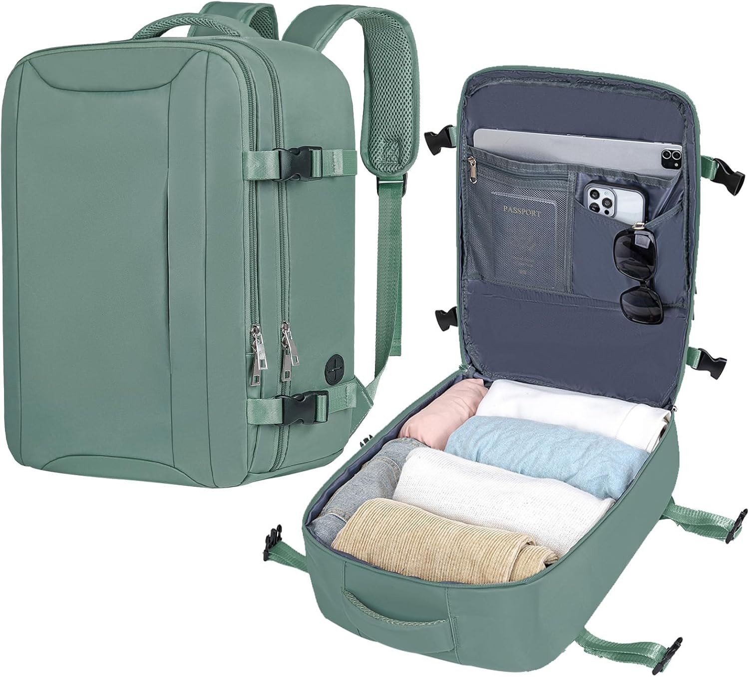 ECOHUB for Easyjet Cabin Bags 45x36x20, 30L Underseat Carry on Backpack with 17.3” Laptop Compartment, Water-resistant Travel Hand Luggage Bag, Recycled Rucksack with Anti-theft Pocket, Blue Green
