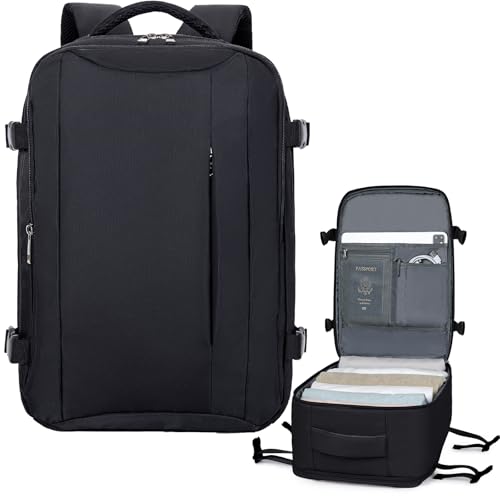 HOMIEE Easyjet Cabin Bags 22-40L Expandable Travel Backpack 45x30x17 Underseat Carry On Backpack Flight Approved Hand Luggage Suitcase 15.6 Inch Laptop Rucksack Fit Casual Daypack School Bag Black
