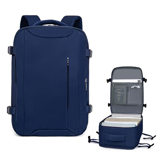 HOMIEE Easyjet Cabin Bags 22-40L Expandable Travel Backpack 45x30x17 Underseat Carry On Backpack Flight Approved Hand Luggage Suitcase 15.6 Inch Laptop Rucksack Casual Daypack School Bag Blue