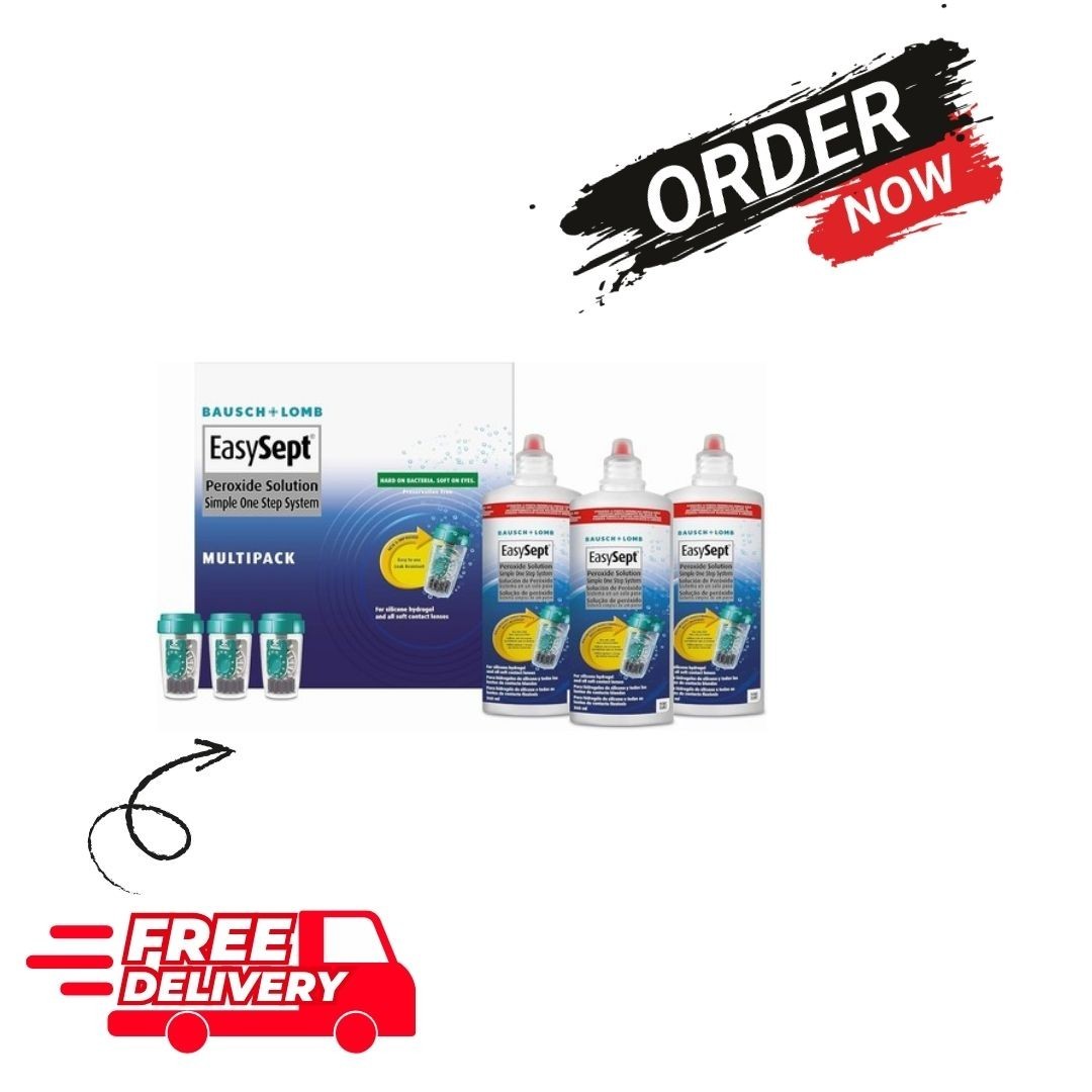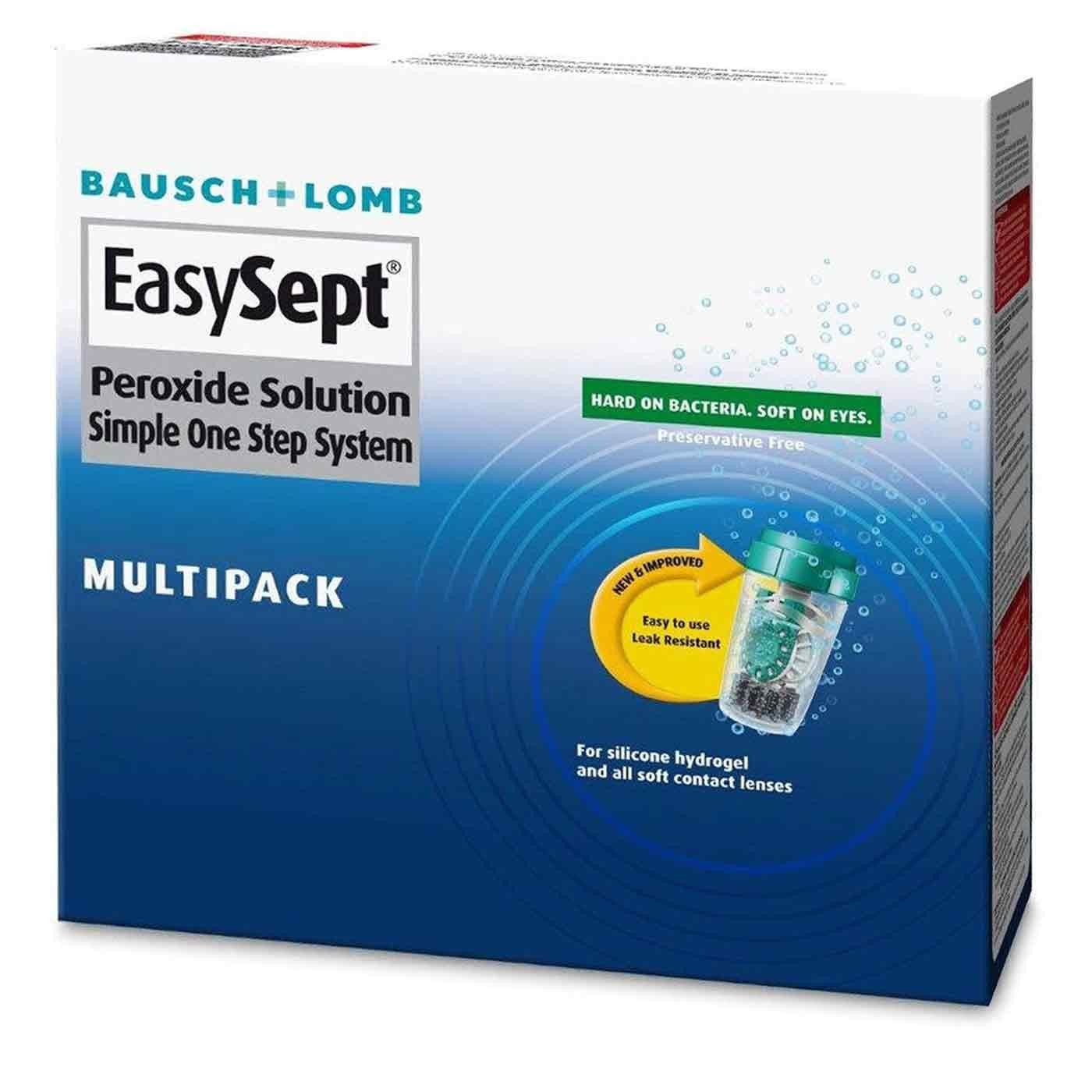 EasySept Hydrogen Peroxide Multipack, 3x 360ml Contact Lens Solution Simple One Step System for Disinfection of Soft Contact Lenses & Lens Case with Neutralising Disc, Suitable for Sensitive Eyes