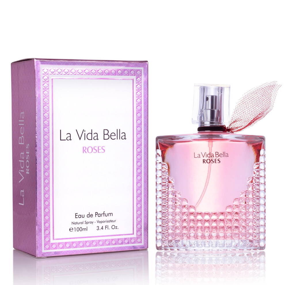 La Vida Bella Roses for Women Eau De Parfum - Floral Amber Fragrance that Combines Top Notes of Raspberry Pink Pepper & Bergamot - Sugary Rush & Citr