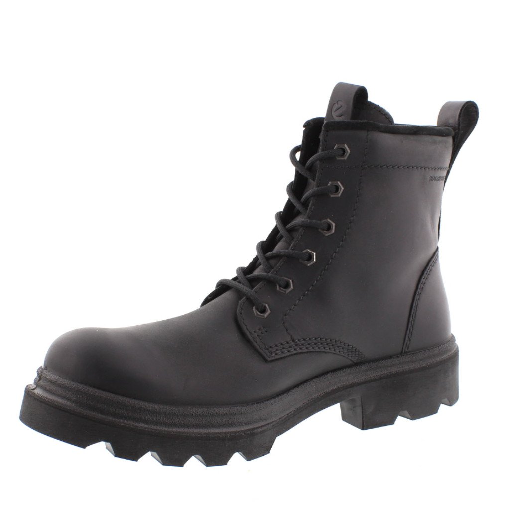 ECCO Grainer Mens UK 8 EU 42 Black Leather Waterproof Chunky Lace Up Ankle Boots