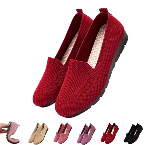 Y-M-H Women’s Orthopedic Knit Comfort Loafers – Slip-Resistant Walking Shoes,Non-Slip Walking Lightweight Soft Mesh Low-Top FLA,for Daily Walking & Work (8,Red)