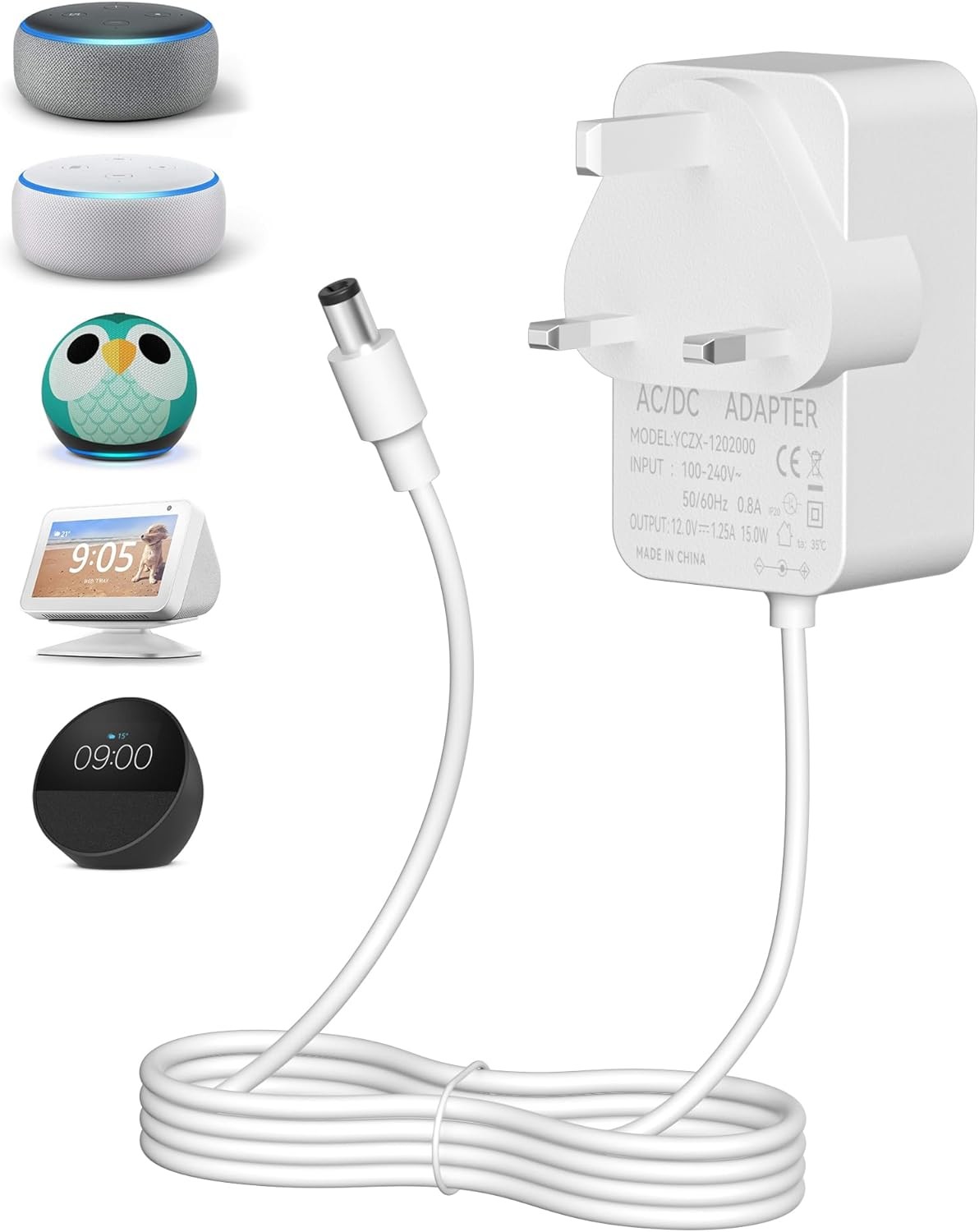 15W Power Supply Charger for Alexa Echo Dot (3Rd/4Th/5Th Gen), 12V Power Cable f